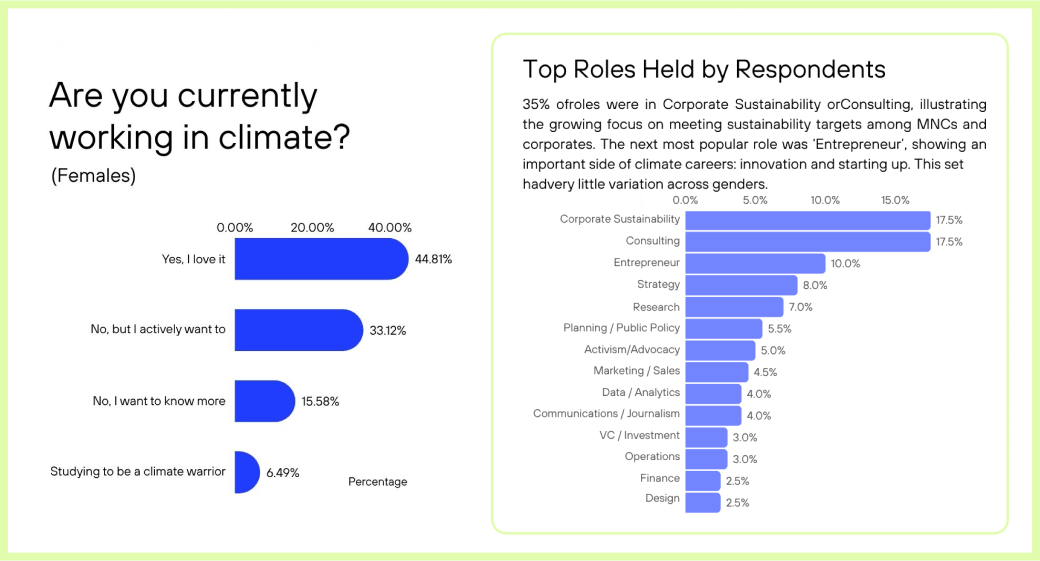 This is the starting point for more visibility, data & women in climate leadership. We had over 1050+ downloads within 2 months of the report launch, and we hope for more women in climate careers!
