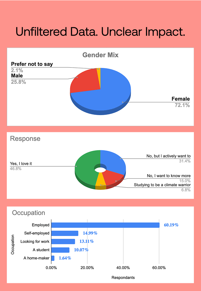 There was no structured data on women in India’s climate workforce. Just scattered powerful stories, and fragmented insights but no clear way to see the bigger picture. The challenge was to bring clarity, structure, and visibility to what the data was trying to say.